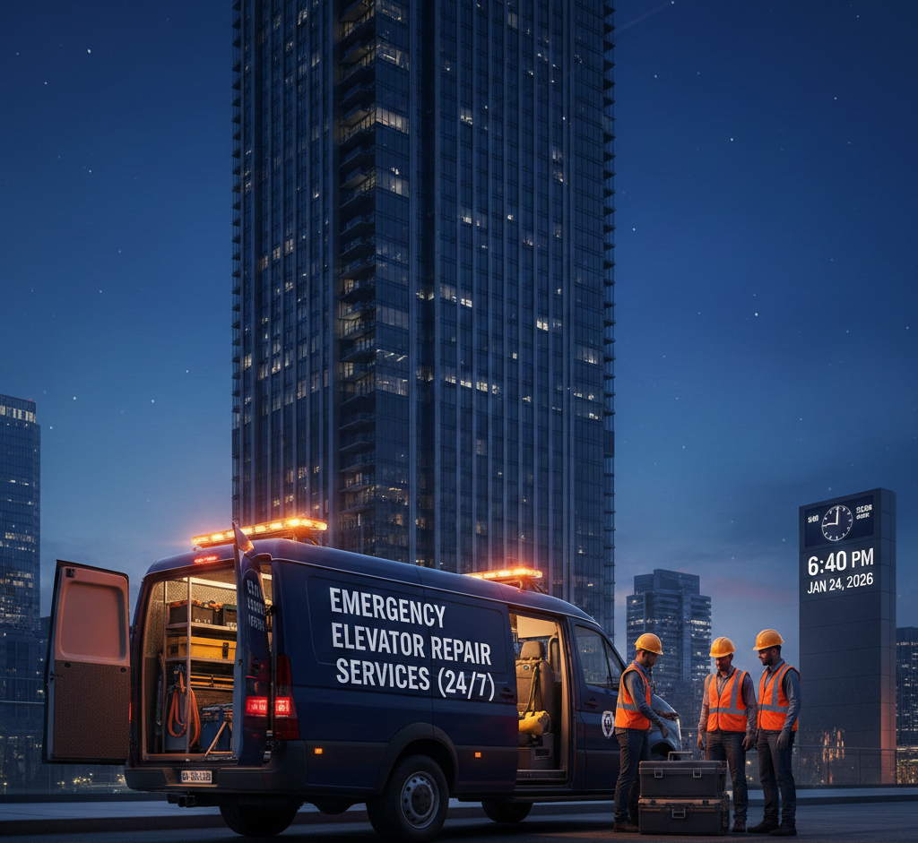 When an elevator breaks down unexpectedly, immediate action is essential for safety and convenience. Our emergency elevator repair services are available 24/7 to ensure fast response, reliable troubleshooting, and safe restoration of your lift system at any time of the day or night.
